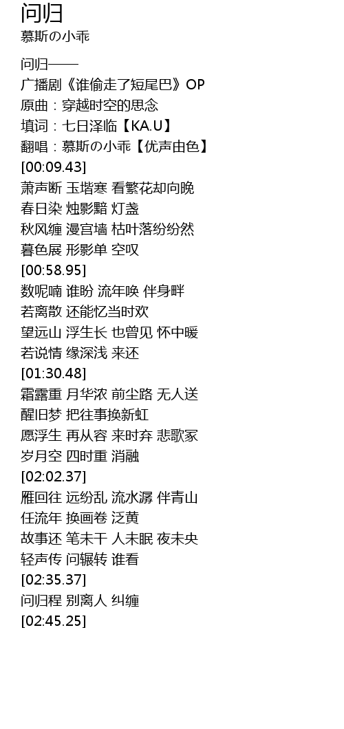 | [00:00.00] | 问归—— |