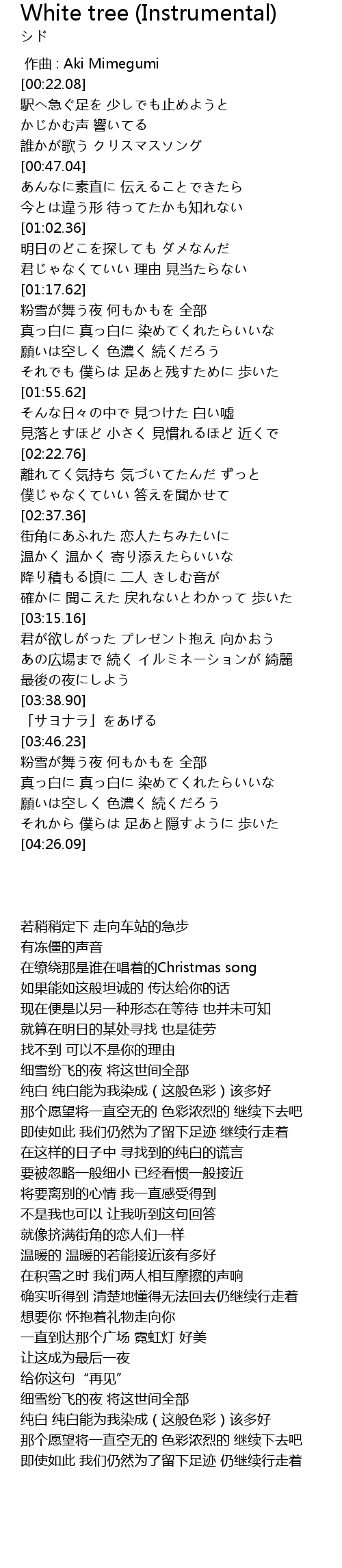 | [02:54.13] | 降り積もる頃に 二人 きしむ音が |