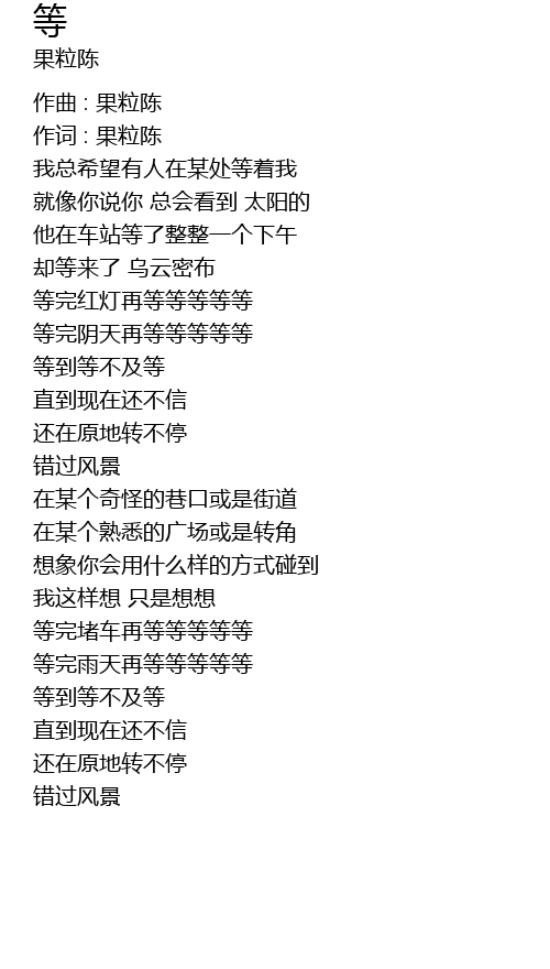 | wo zong xi wang you ren zai mou chu deng zhe wo | |