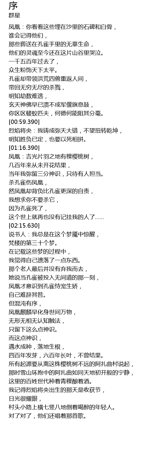 | [02:39.080] | 凤凰才意识到孔雀恃宠生娇, |