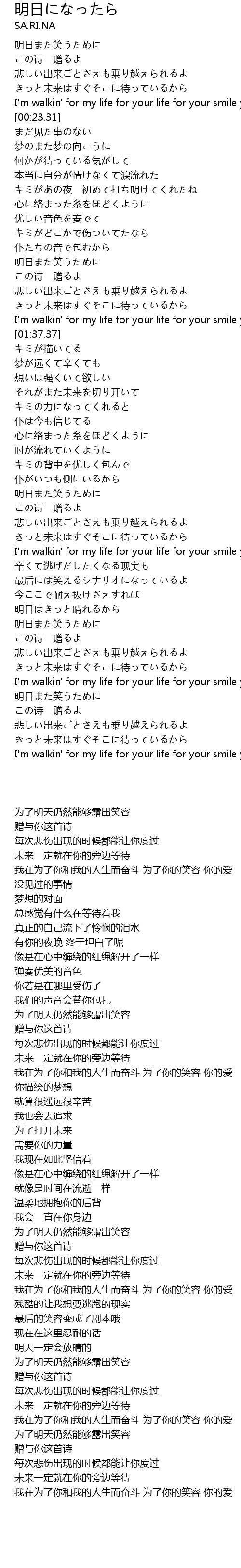 | [00:17.11] | I' m walkin' for my life for your life for your smile your love |
