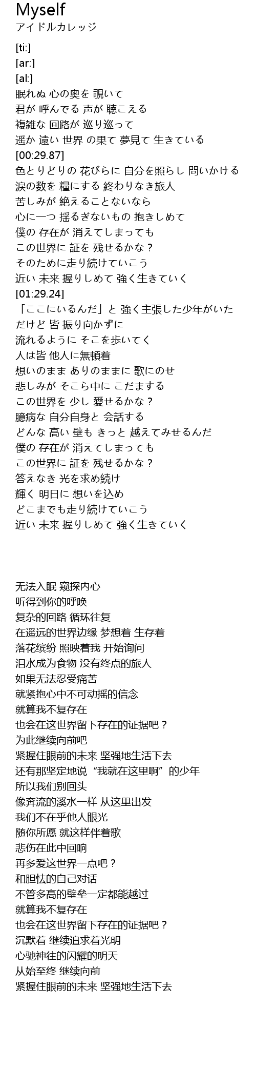| [01:36.60] | 还有那坚定地说“我就在这里啊”的少年 |