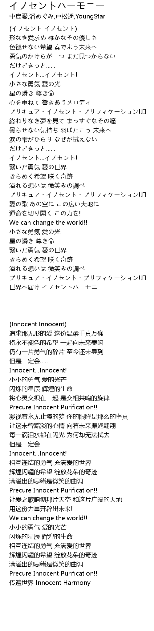 | [03:49.70] | 世界へ届け イノセントハーモニー |