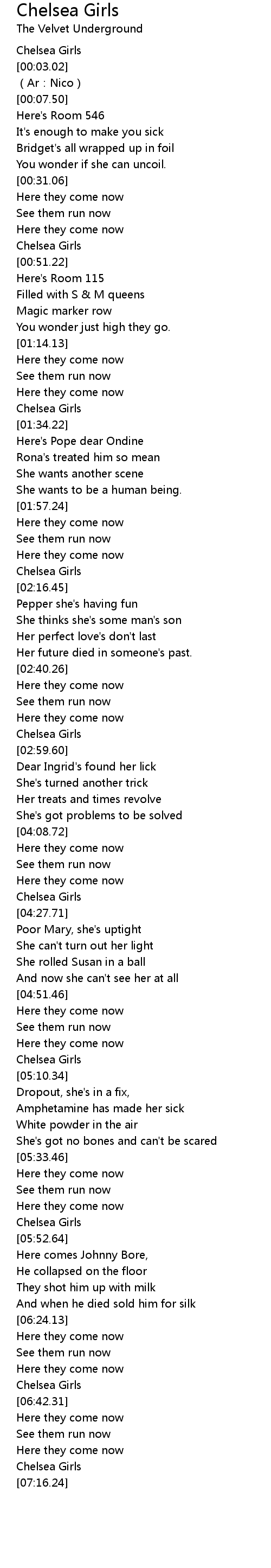 | [02:55.19] | Chelsea Girls |