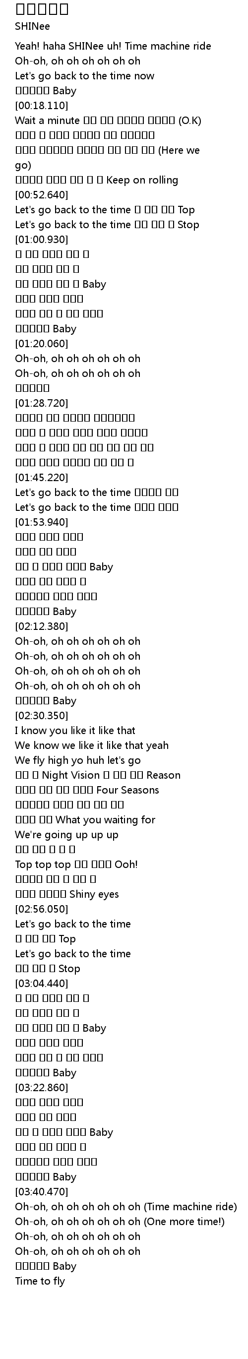 | [00:03.000] | Yeah! haha SHINee uh! Time machine ride |