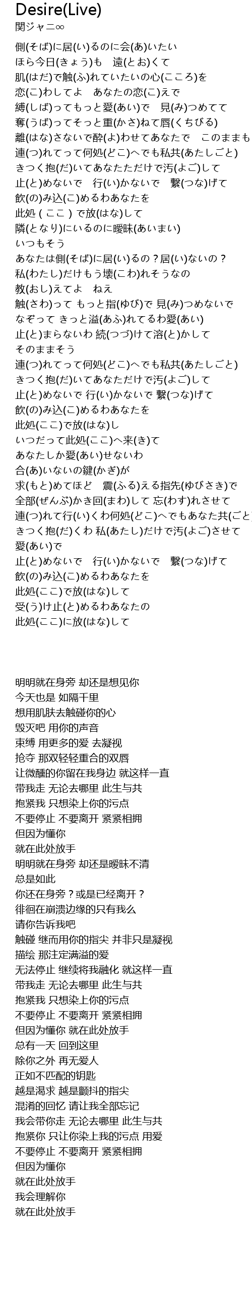 | [04:03.96] | 止(と)めないで 行(い)かないで 繋(つな)げて |