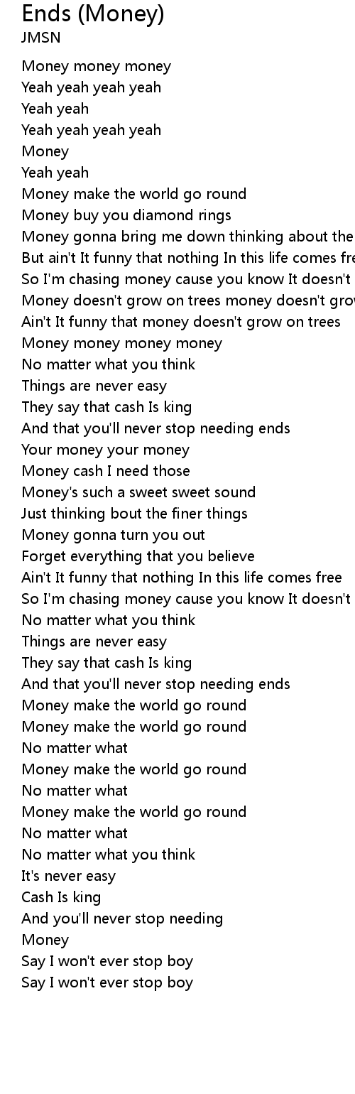 | [01:03.95] | Money doesn't grow on trees money doesn't grow on trees |
