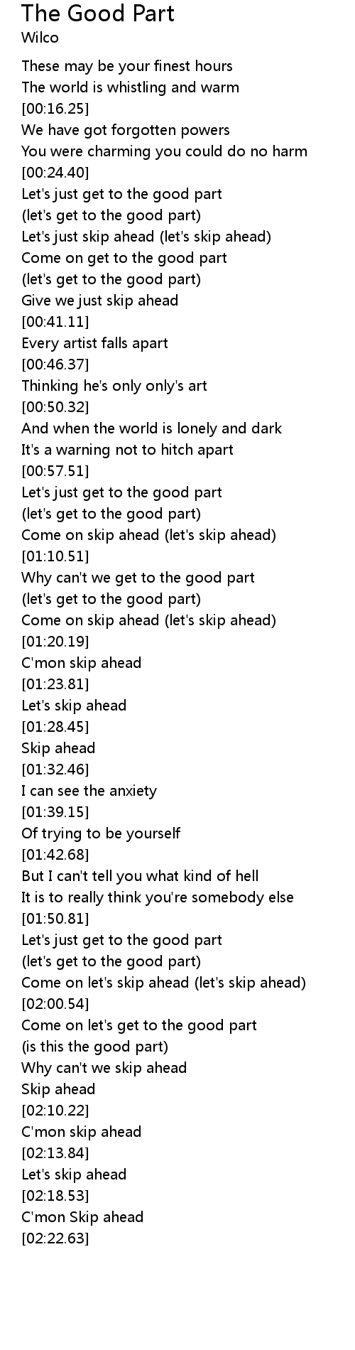 Why can't we get to the good part |
