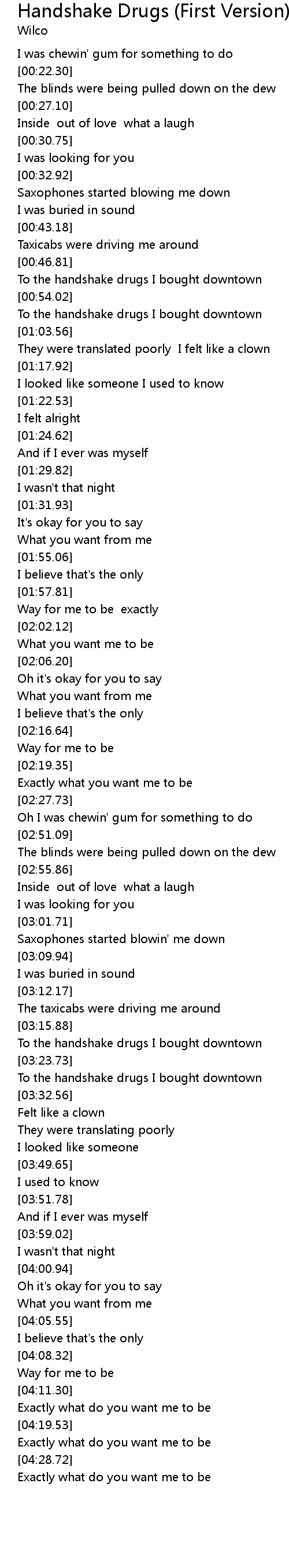 To the handshake drugs I bought downtown |