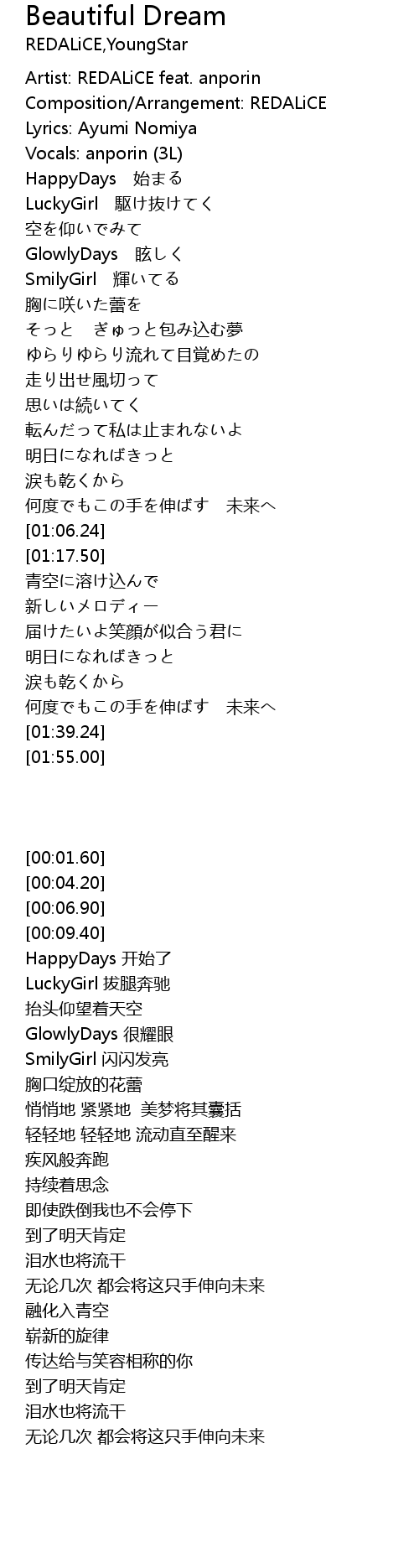 | [00:01.60] | Artist: REDALiCE feat. anporin |