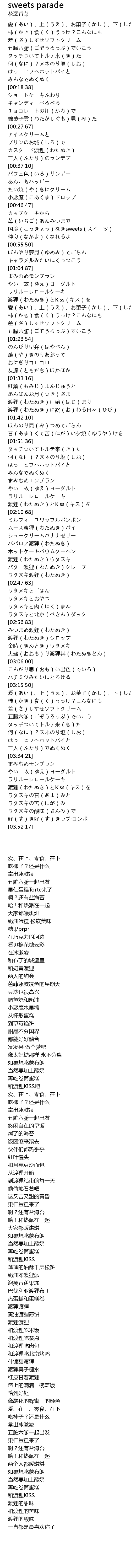 | [00:51.43] | 国境(こっきょう)なきsweets(スイーツ) |