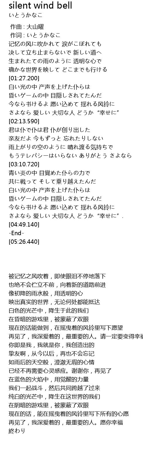 | [04:23.480] | 今なら书けるよ 愿い込めて 揺れる风铃に |