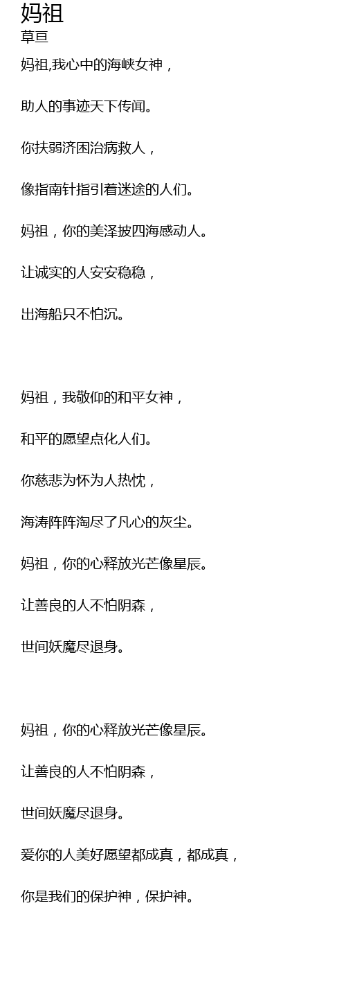 | 妈祖,我敬仰的和平女神, | |