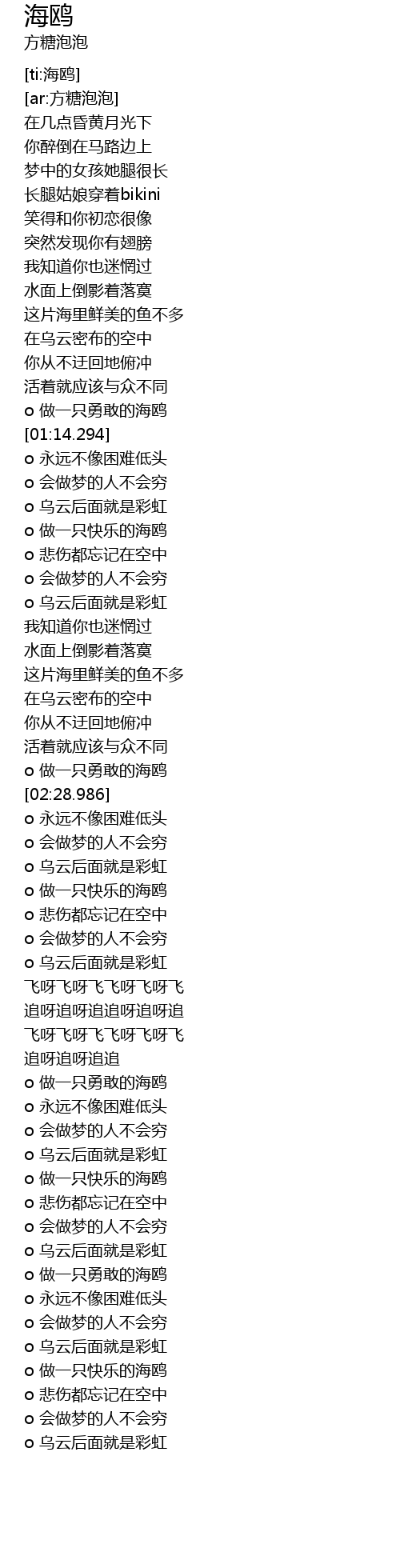 | [01:27.406] | o 做一只快乐的海鸥 |
