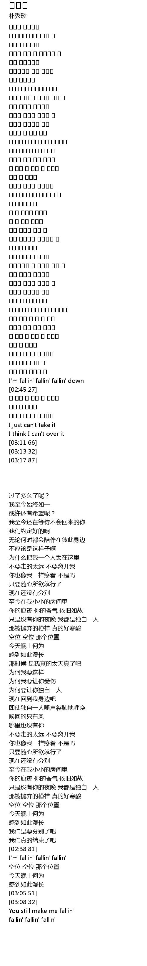 | [02:38.81] | I' m fallin' fallin' fallin' down |