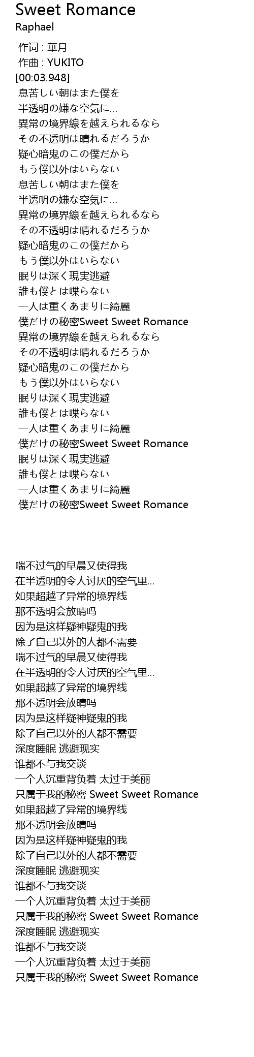 | [03:20.904] | pu mi mi Sweet Sweet Romance |