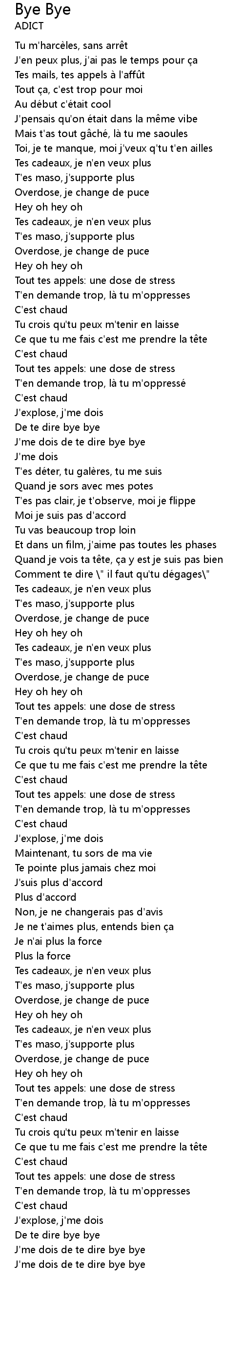 | J' me dois de te dire bye bye | |