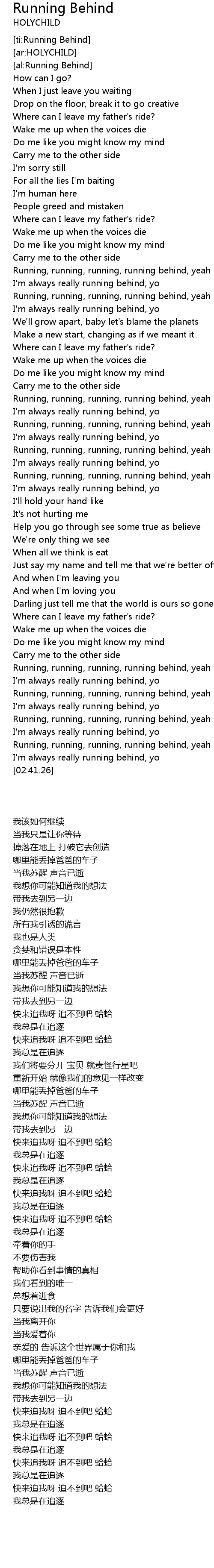 Running Behind 歌词
