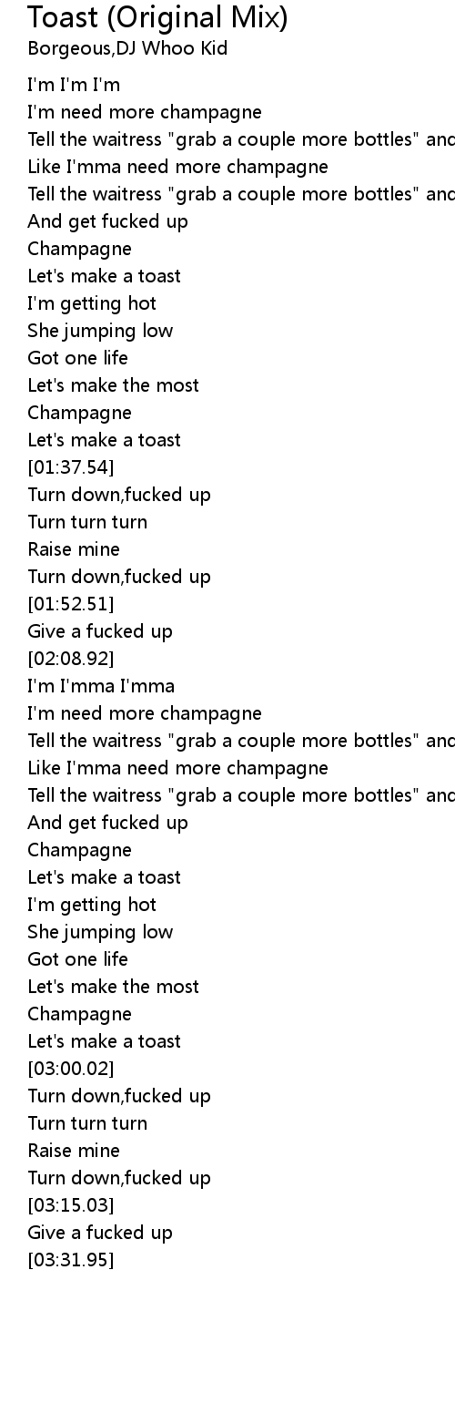 | [02:40.56] | Tell the waitress "grab a couple more bottles" and drink them up |