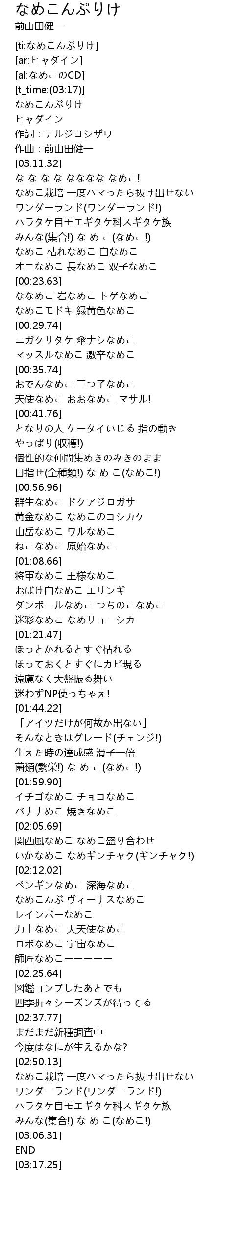 | [03:06.79] | なめこんぷりけ |