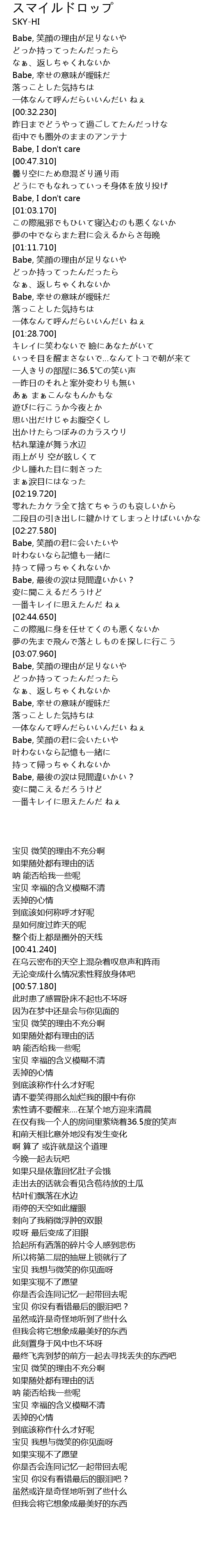 | [03:08.390] | Babe, 笑顔の理由が足りないや |