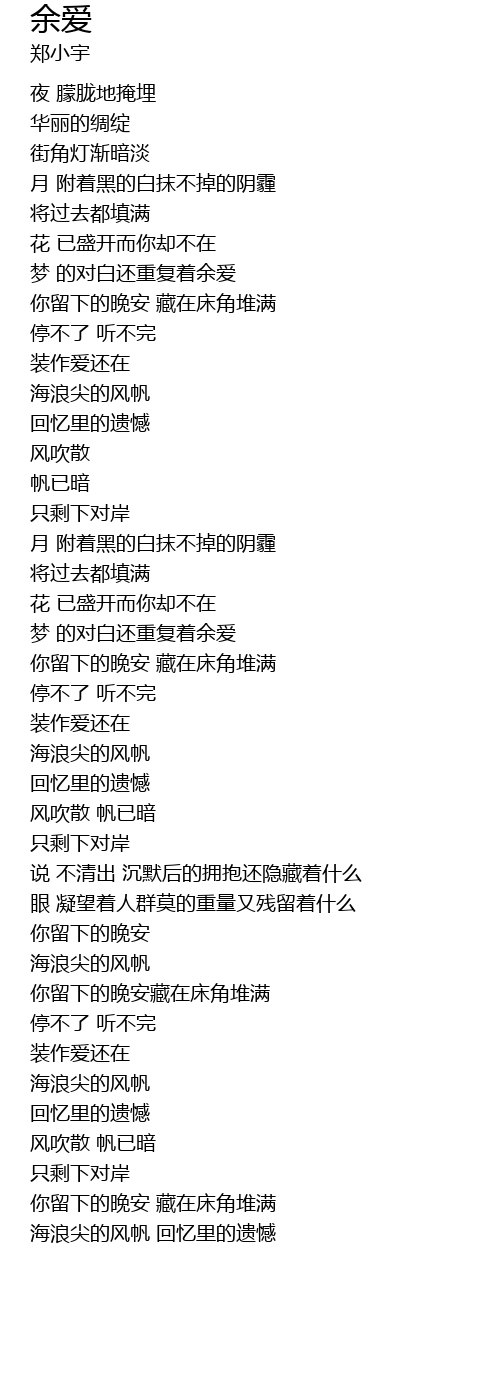 | [00:53.250] | 梦 的对白还重复着余爱 |