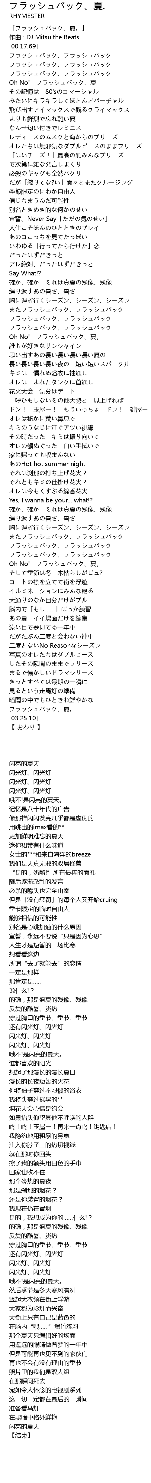 | 歌曲 | フラッシュバック、夏. |