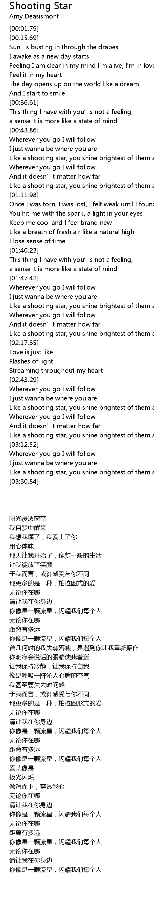| [03:19.66] | Like a shooting star, you shine brightest of them all |