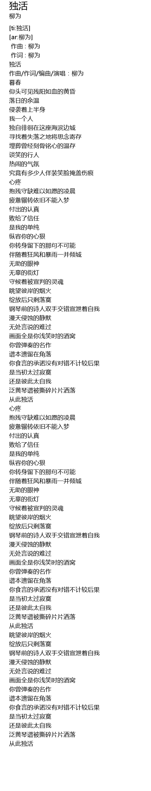 | [00:06.733] | 作曲/作词/编曲/演唱:柳为 |