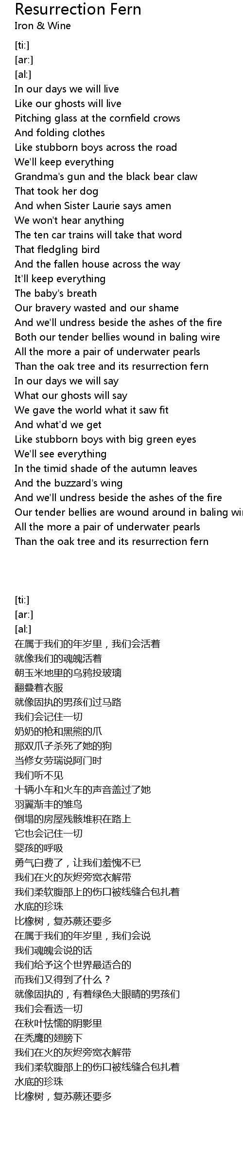 Both our tender bellies wound in baling wire |
