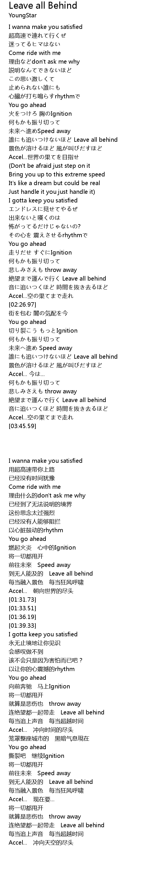 | [03:07.20] | 誰にも追いつけないほど Leave all behind |