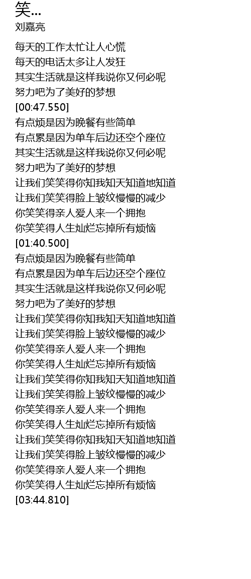 | [02:45.920] | 你笑笑得人生灿烂忘掉所有烦恼 |