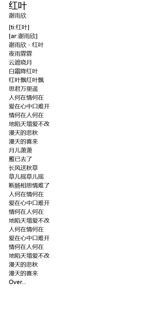 | [00:00.268] | 谢雨欣-红叶 |