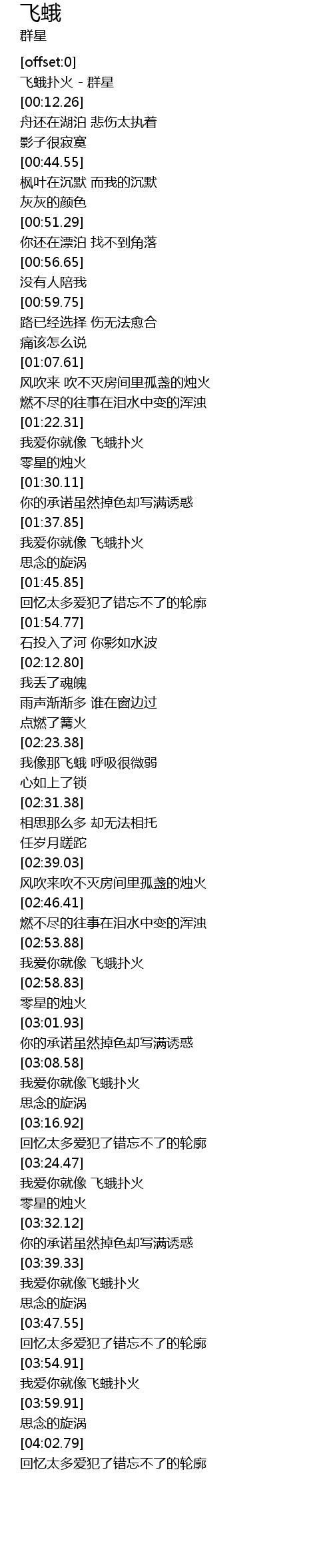 | [00:02.84] | 飞蛾扑火 - 群星 |
