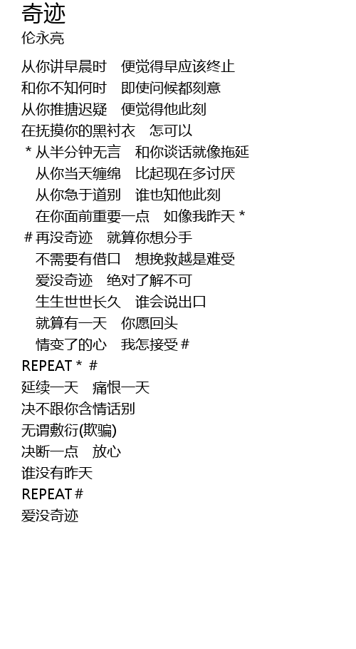 | #再没奇迹 就算你想分手 | |