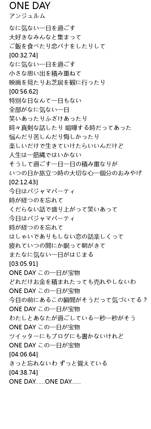 | [03:45.86] | ONE DAY この一日が宝物 |