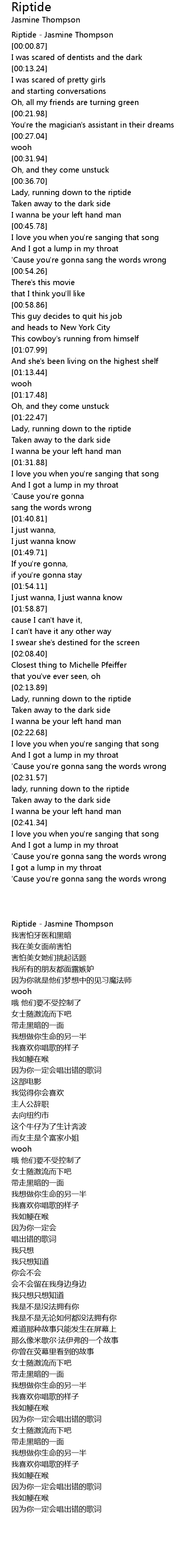 [00:00.22] Riptide - Jasmine Thompson