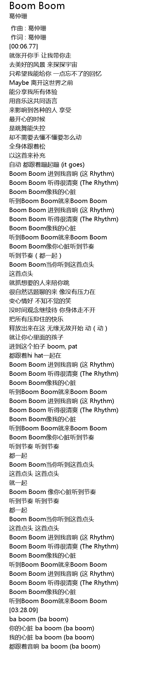 | [03:17.77] | Boom Boom ting de hen qing shuang The Rhythm |