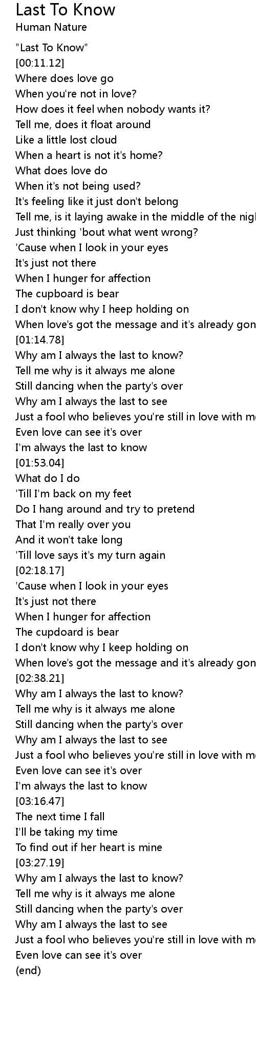 [03:29.53] Why am I always the last to know?