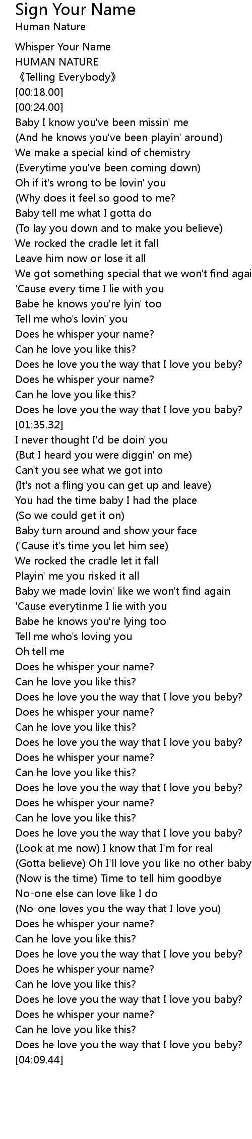 | [02:59.75] | Does he whisper your name? |
