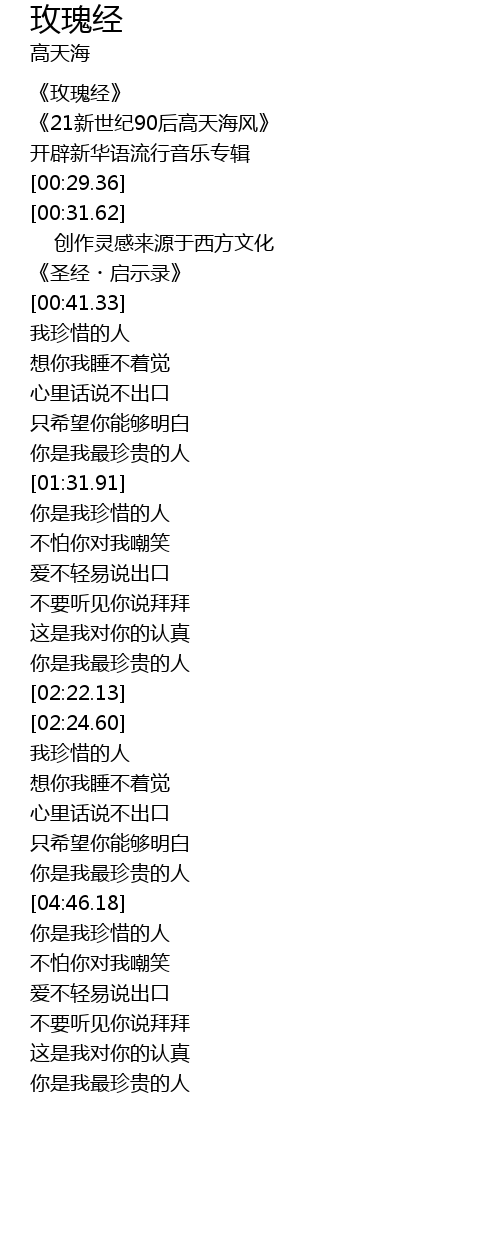 | [00:06.12] | 《玫瑰经》 |