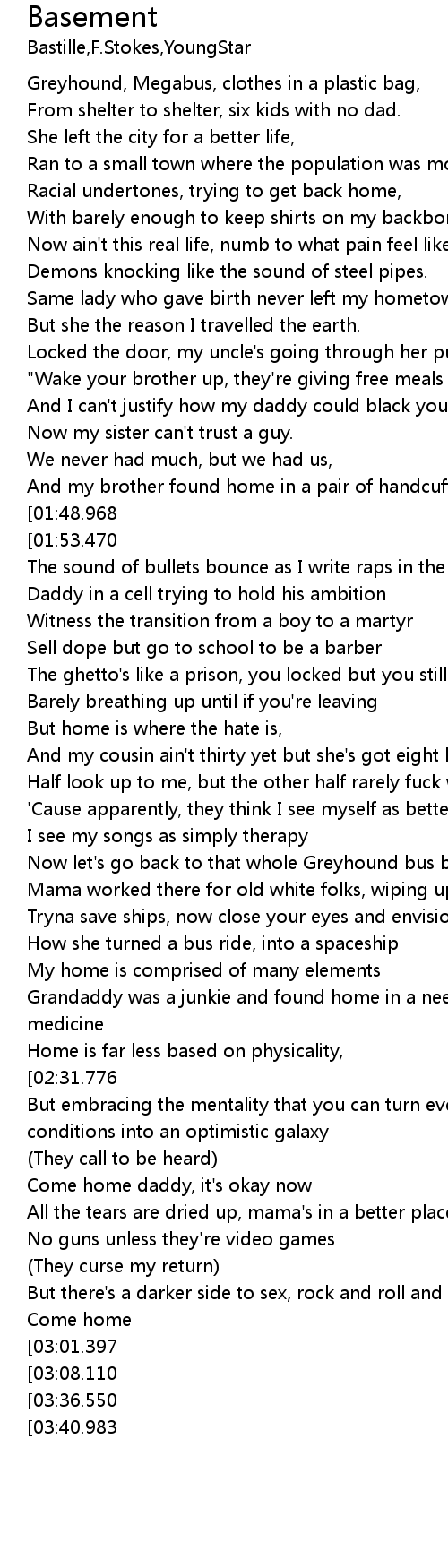 | [01:06.213] | The sound of bullets bounce as I write raps in the kitchen |