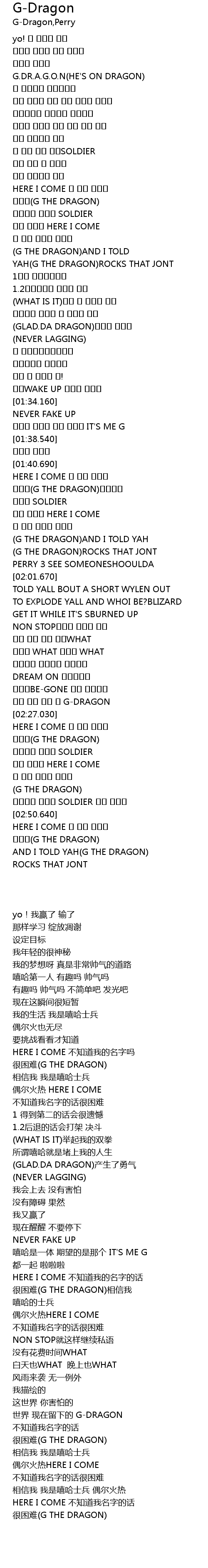 | [01:44.800] | 很困难(G THE DRAGON)相信我 |