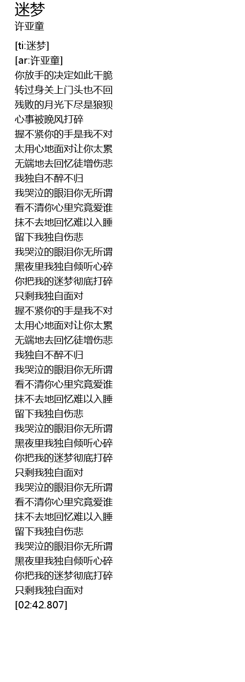 | [02:35.543] | 你把我的迷梦彻底打碎 |
