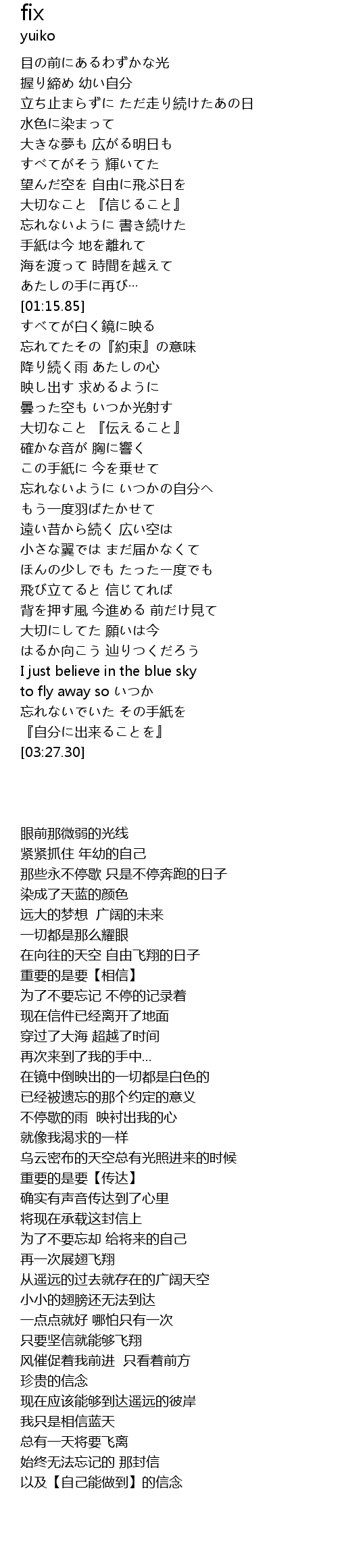 | [03:14.61] | to fly away so いつか |