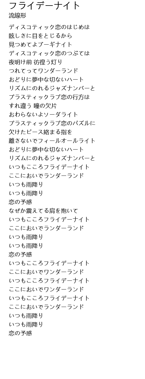 | [01:40.888] | プラスティックラブ恋のパズルに |