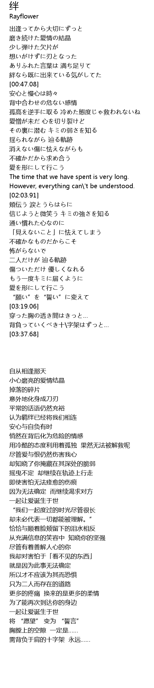 | [00:39.56] | 絆なら既に出来ている気がしてた |