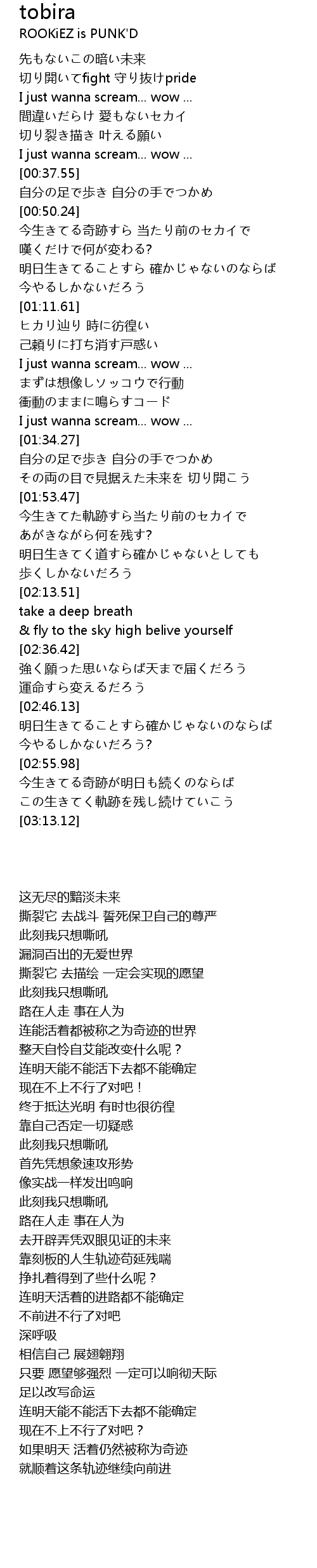 | [00:18.22] | qiè kāi fight shǒu bá pride |