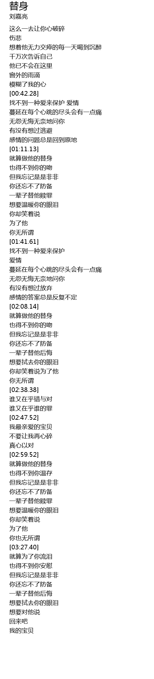 | [02:09.61] | 就算做他的替身 |