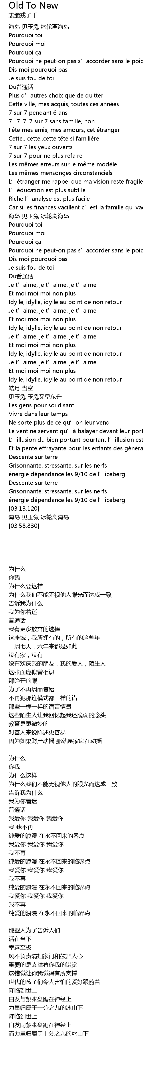 | [01:50.700] | Je t' aime, je t' aime, je t' aime |